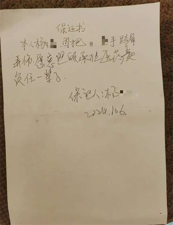 杨某向小玲写下愿意负责的保证书。图/受访者提供