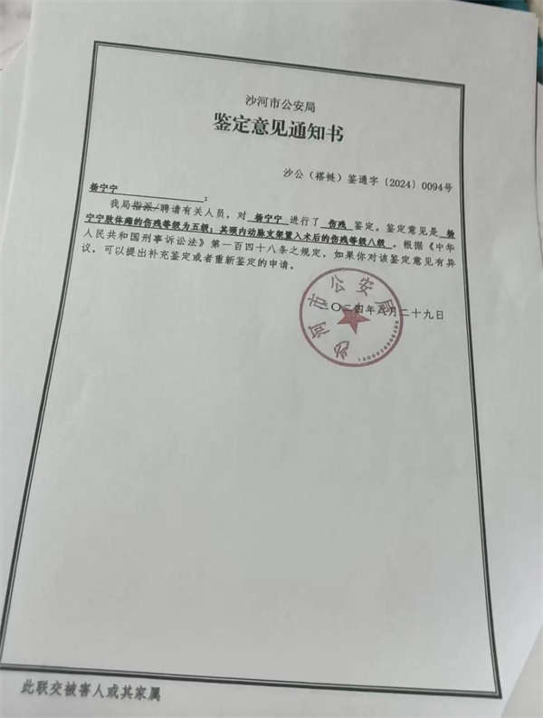 沙河市公安局出具的鉴定意见通知书 图/受访者提供