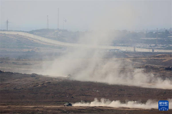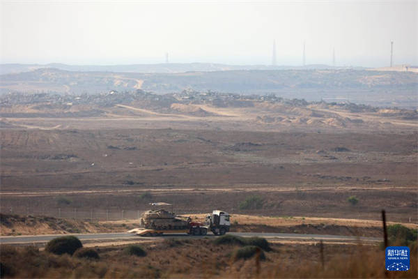 7月10日,以军军车行驶在加沙边境以色列一侧。新华社发(吉尔·科恩·马根摄)