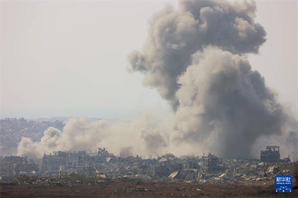 这是7月10日从加沙边境以色列一侧拍摄的加沙地带被毁建筑。新华社发(吉尔·科恩·马根摄)