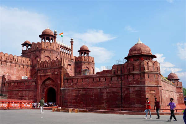 2025年8月21日,人们在位于印度首都新德里的德里红堡游览。新华社记者 伍岳 摄