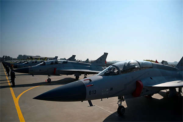 在巴基斯坦航空综合体内停放着的双座型“枭龙”战斗机。 资料图