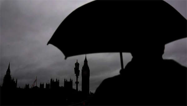 1月27日,一名男子撑伞走在英国伦敦大本钟附近。新华社记者李颖摄
