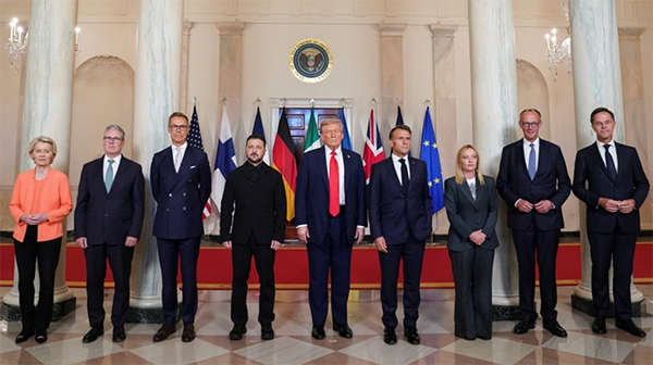 2025年8月18日,美国总统特朗普在白宫与到访的欧洲领导人、乌克兰总统泽连斯基举行多边会晤。 IC Photo