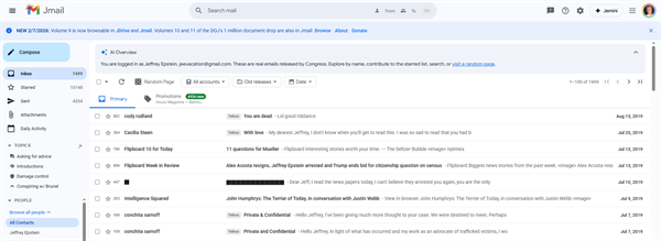 这一轮文件最核心的冲击在于有大量此前从未公开的私人邮件、短信、照片和视频,显示了爱泼斯坦在2008年定罪后,仍然和全球政商科技学术精英保持深度的、长期的、亲密的社交与利益网络。有好事者在网上搭建了jmail.world网站,模拟Gmail、Amazon、手机短信及Facebook等节目,还原各种爱泼斯坦的对外通信记录,非常方便大家查阅。