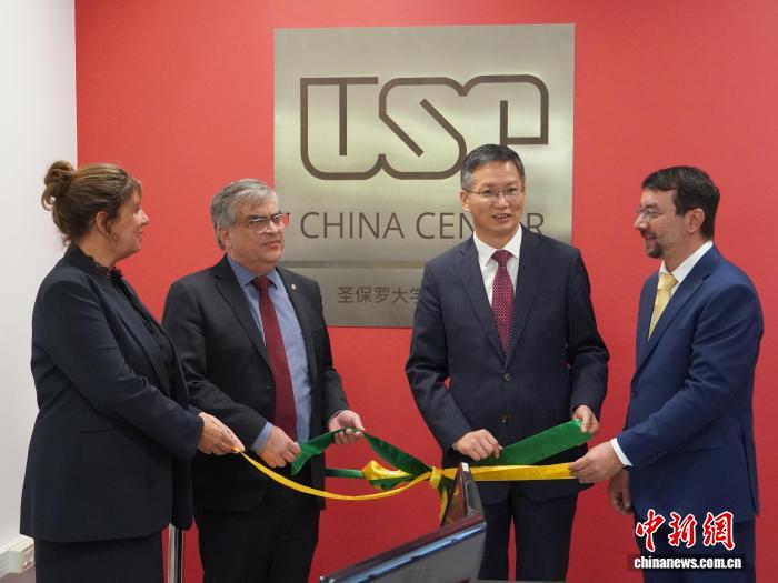 当地时间3月21日,巴西圣保罗,巴西圣保罗大学中国中心成立揭牌仪式。记者林春茵摄