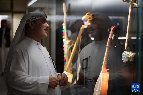 9月28日,在沙特阿拉伯首都利雅得,观众参观“天地同和——中国古代乐器展”。