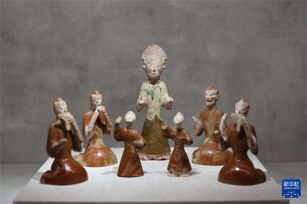 这是9月28日在沙特阿拉伯首都利雅得“天地同和——中国古代乐器展”上拍摄的中国古代音乐主题人物塑像。