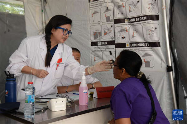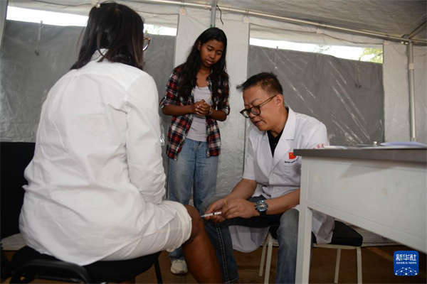 10月21日,在马达加斯加塔那那利佛北郊的阿努西亚拉医院,第24批中国援马达加斯加医疗队队员为当地民众义诊。新华社发(西塔卡·拉乔纳里松摄)