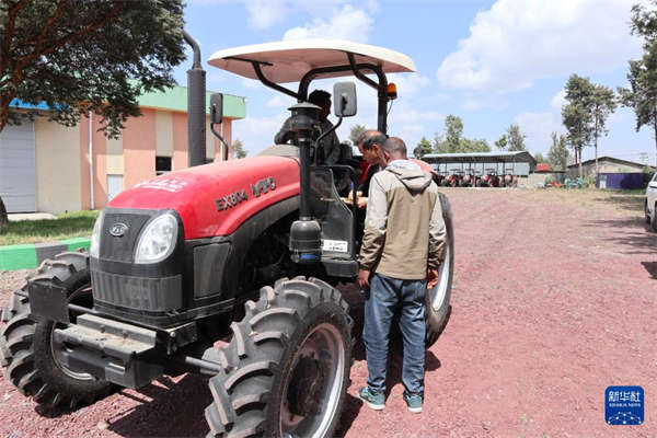 11月26日,在位于埃塞俄比亚首都亚的斯亚贝巴的农业部仓库,工作人员在检查中国捐赠的拖拉机。新华社记者刘方强摄