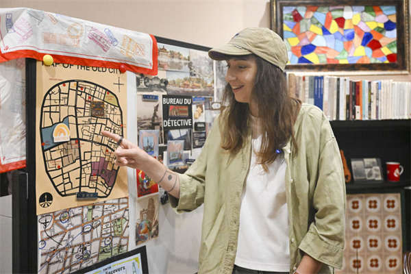 9月22日,乐盖曦在工作室介绍自己探索的City Walk(城市漫游)路线。(陈浩明 摄)