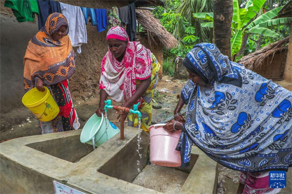 这是1月1日在坦桑尼亚桑给巴尔的奔巴岛拍摄的一处由中国援助坦桑尼亚“桑给巴尔血吸虫病防治技术项目”专家组援助建设的供水设施。它能够为当地社区提供安全用水。新华社发(赫尔曼·埃马纽埃尔摄)