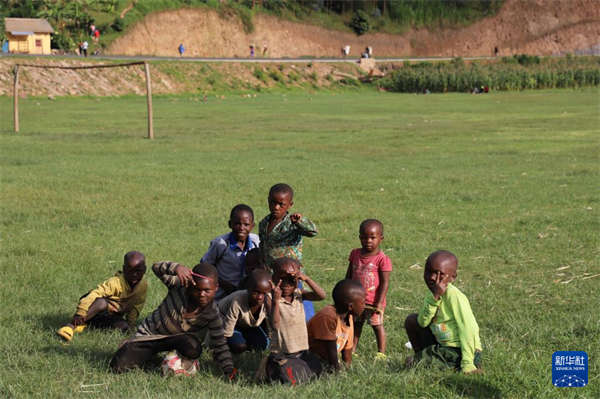 1月21日,在卢旺达北方省,当地儿童在由中国路桥和卢本土企业组成的联营体承建的道路升级项目附近玩耍。