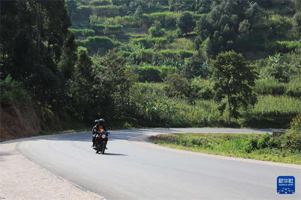 1月21日,在卢旺达北方省,一辆摩托车在由中国路桥和卢本土企业组成的联营体承建的道路升级项目上行驶。