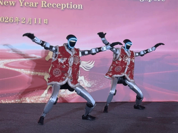 招待会现场,机器狮、机器人献舞,云南艺术家带来变脸、舞蹈和杂技。整场活动融贯古今,尽显春节魅力。