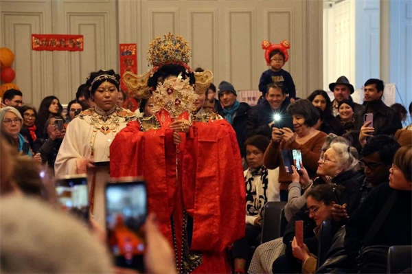 2月14日,在法国巴黎举行的2026年法国汉风新春庆典上,演员身穿中国传统服饰,展示古代婚礼。连日来,世界各地的人们以各种形式迎接马年春节。新华社记者张百慧摄