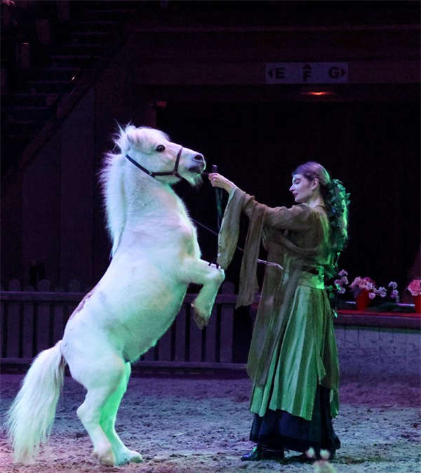 2月11日,在法国北部的尚蒂伊城堡,马术表演团队成员参加传统法国马术表演。新华社记者张百慧摄