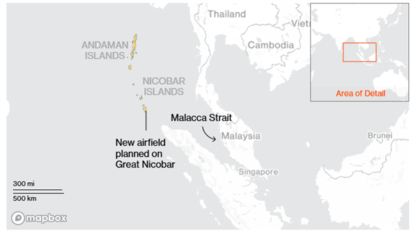 这座新机场也将用于旅游开发,将建在该群岛最南端的大尼科巴岛(面积约为900平方公里,是尼科巴群岛中面积最大的岛屿),距全球最繁忙的海上咽喉之一马六甲海峡约40海里。