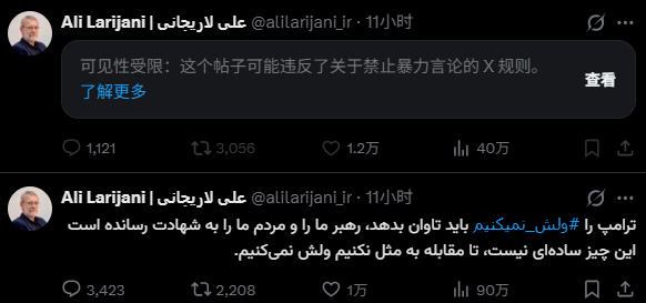 X平台以“可能违反社区规则”为由,屏蔽了拉里贾尼的英文帖文。