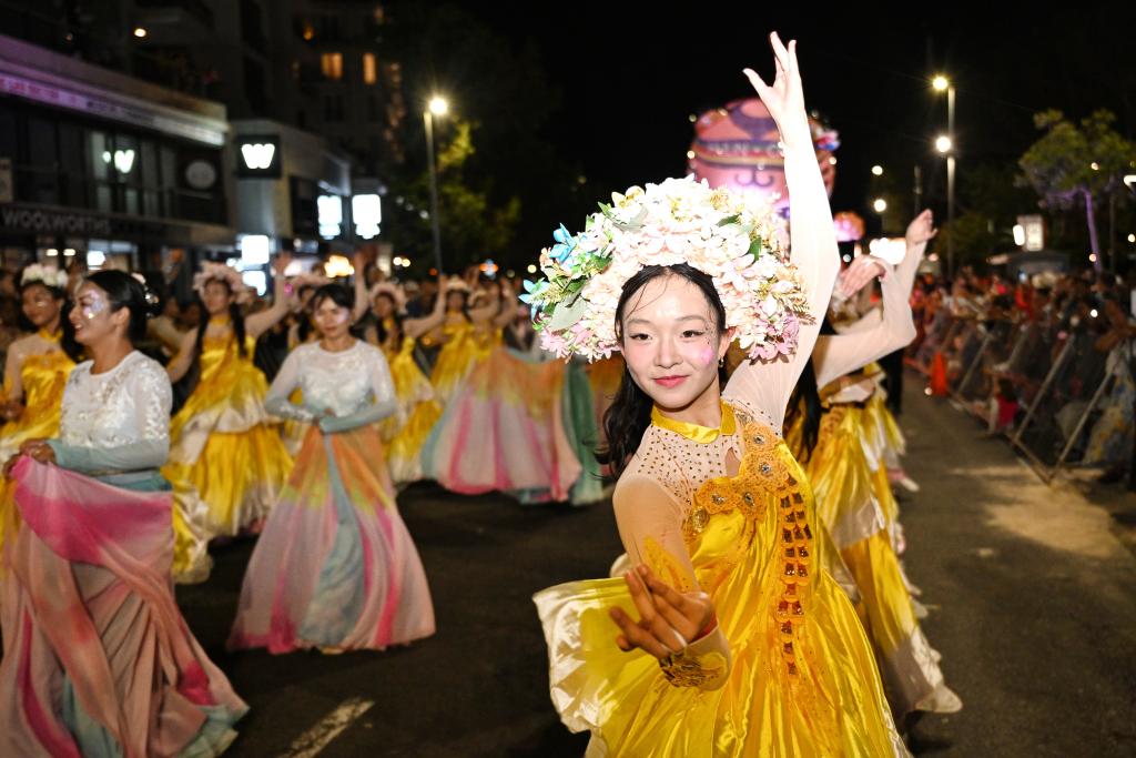 以当地华侨华人为主的中国方阵已是连续第8年参加这一盛会。据率领中国方阵的开普敦华星艺术团团长董钢介绍,今年的中国方阵由2辆花车、4支表演队伍组成,创历年最大阵容,也是当晚规模最大、最受欢迎和期待的方阵之一。除传统文化表演之外,中国方阵今年还首次引入人形机器人。