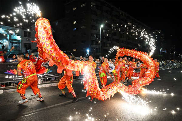 龙狮队的刻苦训练没有白费,舞龙队的烟花表演在狂欢节掀起一波高潮:中国龙上下腾挪翻飞,迸发出阵阵璀璨焰火,观众不时报以赞叹。