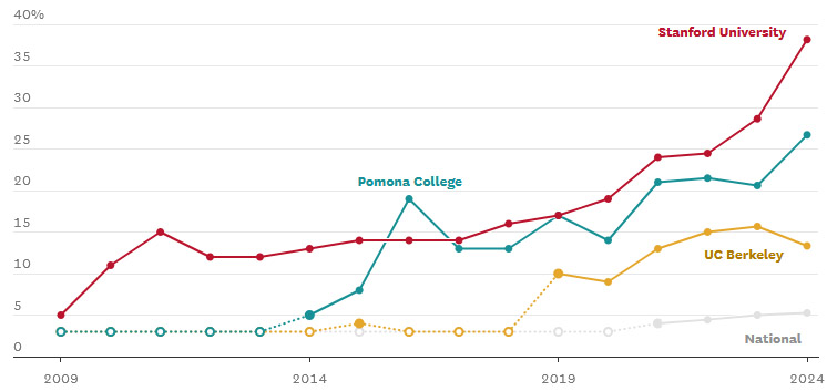 这一趋势在斯坦福大学表现得最为明显,也引发了最多的争议。