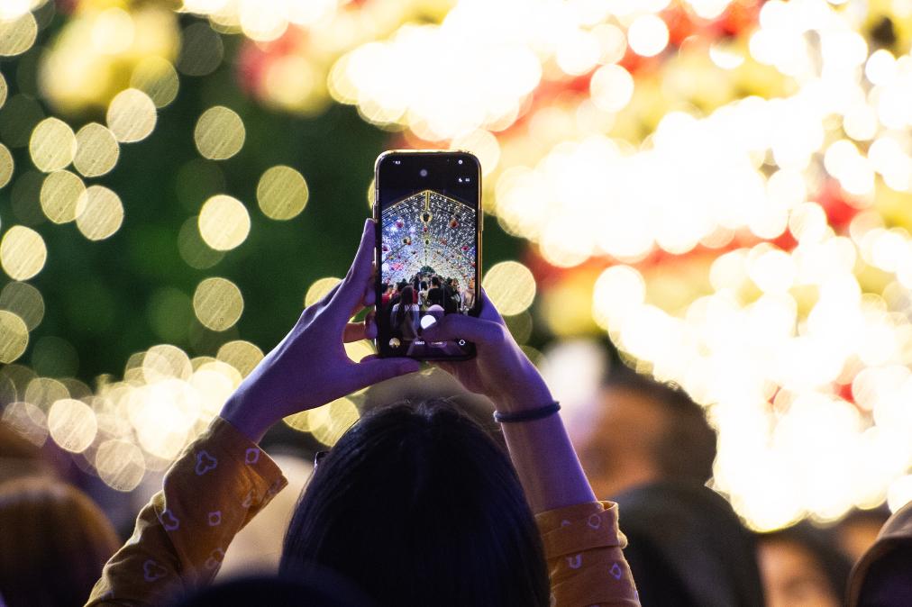 2025年12月23日,一名女子在印度尼西亚雅加达举行的灯光节活动上拍照。新华社发(维里摄)