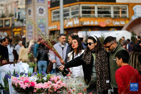 3月19日,人们在伊朗首都德黑兰的塔吉里什集市购买商品,迎接诺鲁孜节。