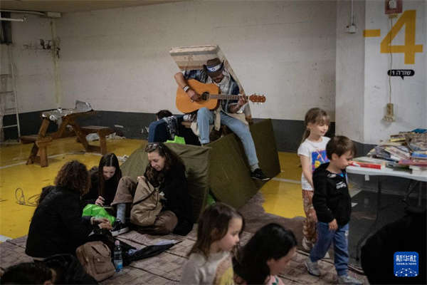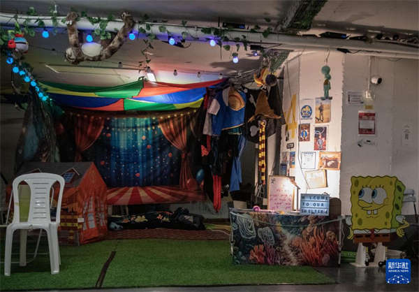 3月26日,在以色列特拉维夫一处地下民防设施,家长为小朋友打造出一个充满童趣的避难空间。