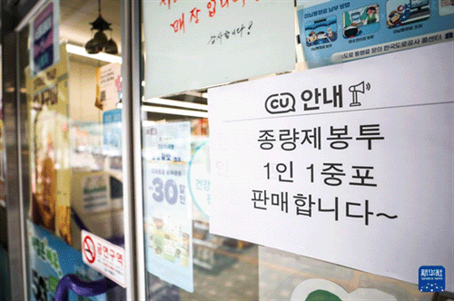 这是3月30日在韩国首都首尔一家超市门前拍摄的限购重量制收费垃圾袋的公告。标语为"按重量计算的包装袋,每人限购一个"新华社