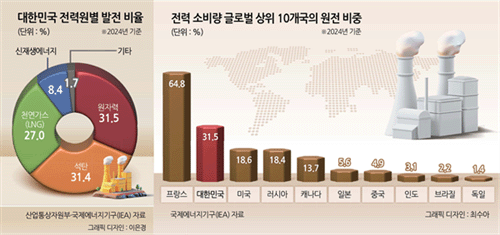 根据韩国产业通商资源部数据,2024年韩国发电结构中核电占比约31.5%,天然气约27%,燃煤约31%,可再生能源约8.4%。相比中国和日本(核电占比约5%),韩国可以说是核能撑起了电力的一片天。