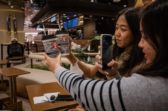在雅加达的一家霸王茶姬门店,顾客正在给自己点的饮品拍照。 《纽约时报》配图
