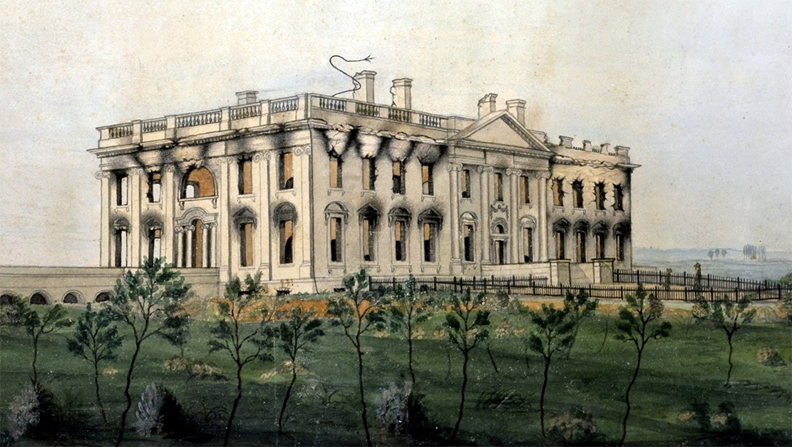 画作:被焚后的白宫 资料图。