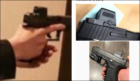 白宫记者协会晚宴枪击事件现场,美国特工拔枪戒备。有网民将其使用的红点瞄准镜与Holosun产品对比 社交媒体
