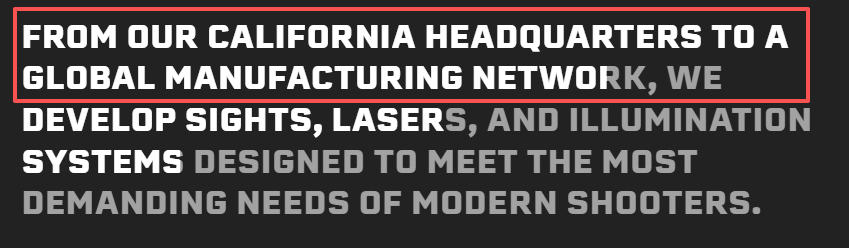Holosun网页强调“加州总部”和“全球制造网络”