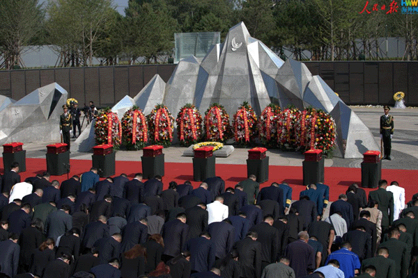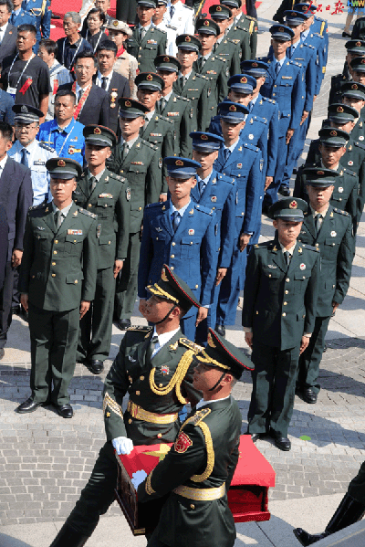 9月13日上午,第十二批在韩中国人民志愿军烈士遗骸安葬仪式在沈阳抗美援朝烈士陵园举行。(海外网 王陈逍遥/摄)