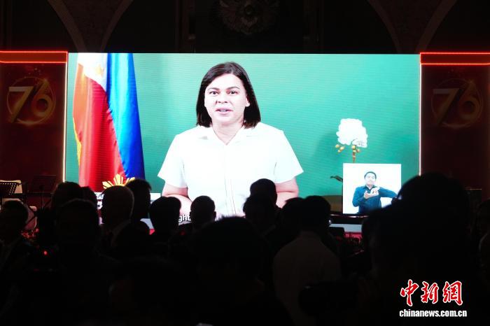 图为菲律宾副总统莎拉·杜特尔特视频致辞。记者 张兴龙 摄