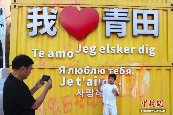 10月4日,浙江青田,“我爱青田”艺术装置吸引游客拍照打卡。中新社记者 周健 摄