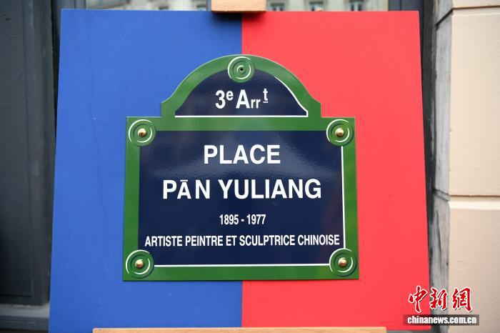当地时间10月6日,“潘玉良广场”揭幕仪式在巴黎举行。图为当天揭幕的“潘玉良广场”铭牌,特别注明她是中国女画家和雕塑家。今年是潘玉良(1895-1977)诞辰130周年。中新社记者 李洋 摄