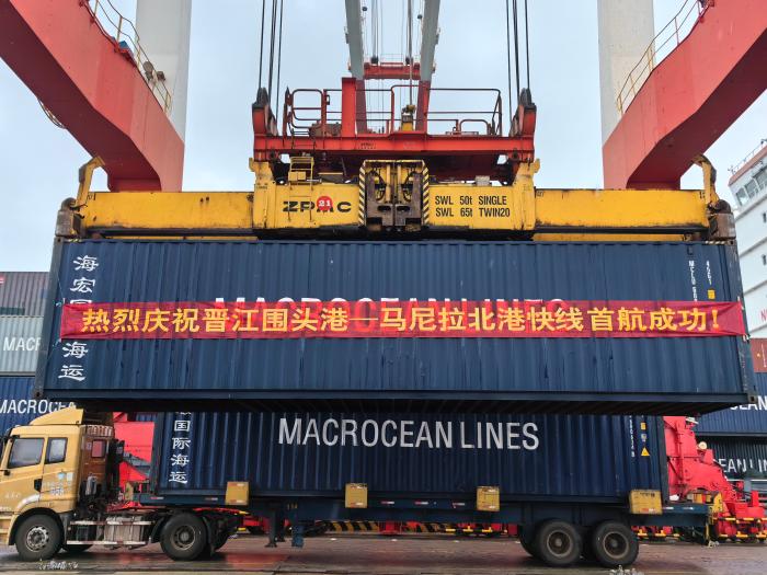 2024年6月1日,福建晋江围头港至菲律宾马尼拉港“点对点”货运直航快线首航。中新社发 泉州海事局 供图