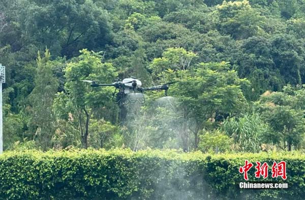 无人机喷水作业。程景伟 摄