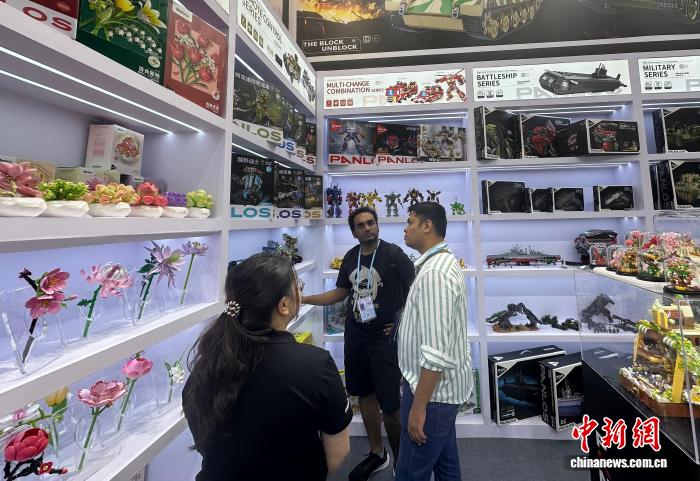 11月2日,第138届广交会第三期继续在广州举行。图为境外采购商正在了解中国企业展出的玩具产品。中新社记者 程景伟 摄