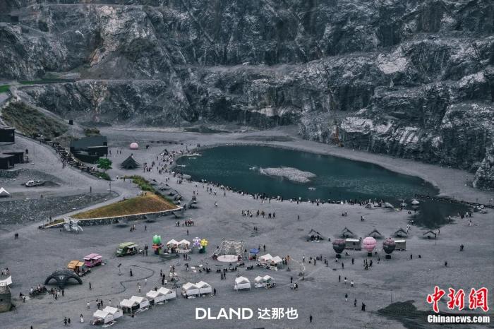更令人惊喜的是,一座曾经荒废的矿山,如今已成为年轻人流连的山谷秘境。通过生态修复与创意设计,金华山将沉寂矿坑打造为“达那也”综合性文旅空间:深蓝矿坑湖成为潜水与桨板运动基地,裸岩矿壁则化身为自然景观与户外体验场,构建出“打卡+运动+度假+文化”的多元业态。