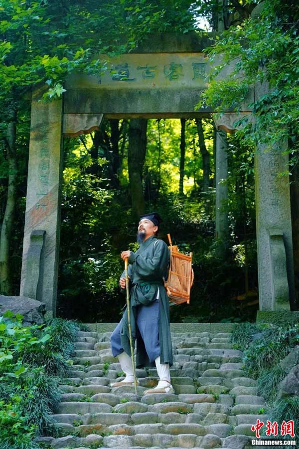 徐霞客在霞客古道(演员扮演)。金华山双龙风景旅游区管委会 供图