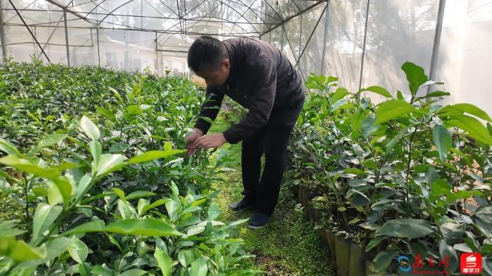 钟永辉查看柚子树苗生长情况