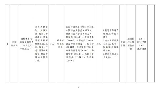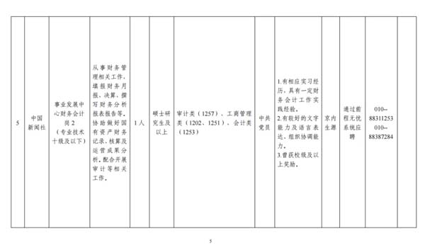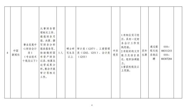 附件:中国新闻社2026年度公开招聘岗位信息表