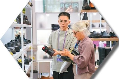在广东省广州市,采购商在第138届中国进出口商品交易会(广交会)上了解产品。