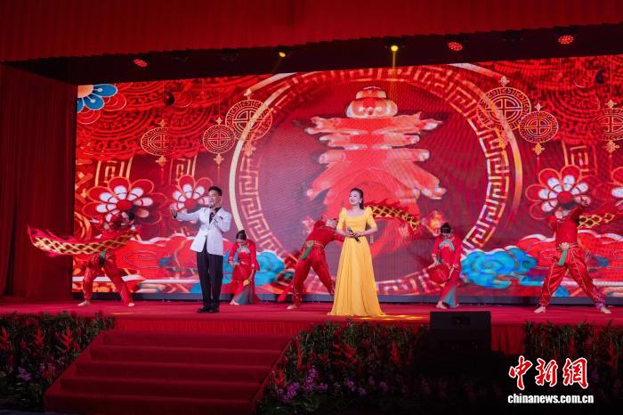 招待会上献上精彩文艺表演。记者 陈悦 摄