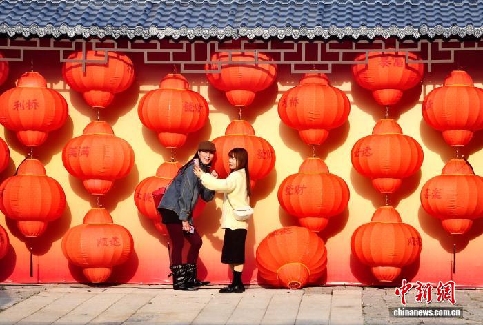 2月10日,游客在福清市利桥历史文化街区拍照留念。中新社记者 张斌 摄