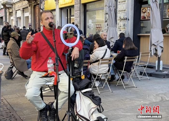 一位中餐馆老板从店门口探出头来,朝记者笑着点点头:“这几日他经常来,我们都认识他。有他在,门口总会多围一圈人。”话音未落,又有路过的游客停下,随着歌声加入围观队伍。